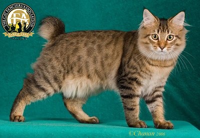 Questa razza si č sviluppata inizialmente attraverso la selezione naturale. Gli esemplari fondatori di questa razza erano gatti domestici selvatici in possesso di una coda naturalmente molto corta. E’ grazie alla collaborazione di esperti allevatori americani che utilizzando questi gatti trovati in diverse parti del territorio degli Stati Uniti che oggi possiamo ammirare questi bellissimi Bobtail Americani. Uno dei fenomeni più interessanti che riguardano questa razza è la sorprendente somiglianza con gatti che si trovano a migliaia di chilomettri di distanza e senza alcun patrimonio genetico in comune. Allevando selettivamente gatti simili tra loro gli allevatori hanno aiutato Madre Natura a sviluppare il Bobtail Americano in quel grande, caloroso gatto dal look selvatico che vediamo oggi. Nessuna altra razza riconosciuta è stata utilizzata per lo sviluppo del Bobtail Americano. I Bobtail Americani sono una razza molto forte e sana senza alcuna conosciuta predisposizione genetica a problemi di salute.