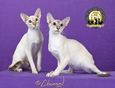 il CFA permise ai Colorpoint di competere in esposizine nel 1964 con i gatti pointed rosso e crema, e accettò i colori lynx e tortie point nel 1969.